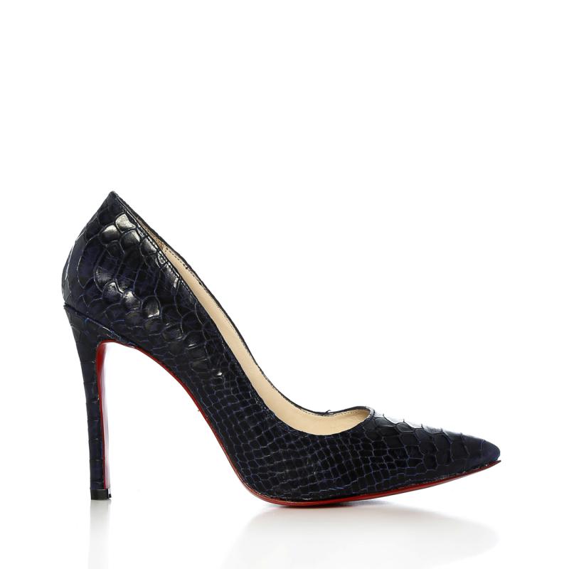 Lacivert Yılan Baskılı Deri Stiletto Ayakkabı(A-105)