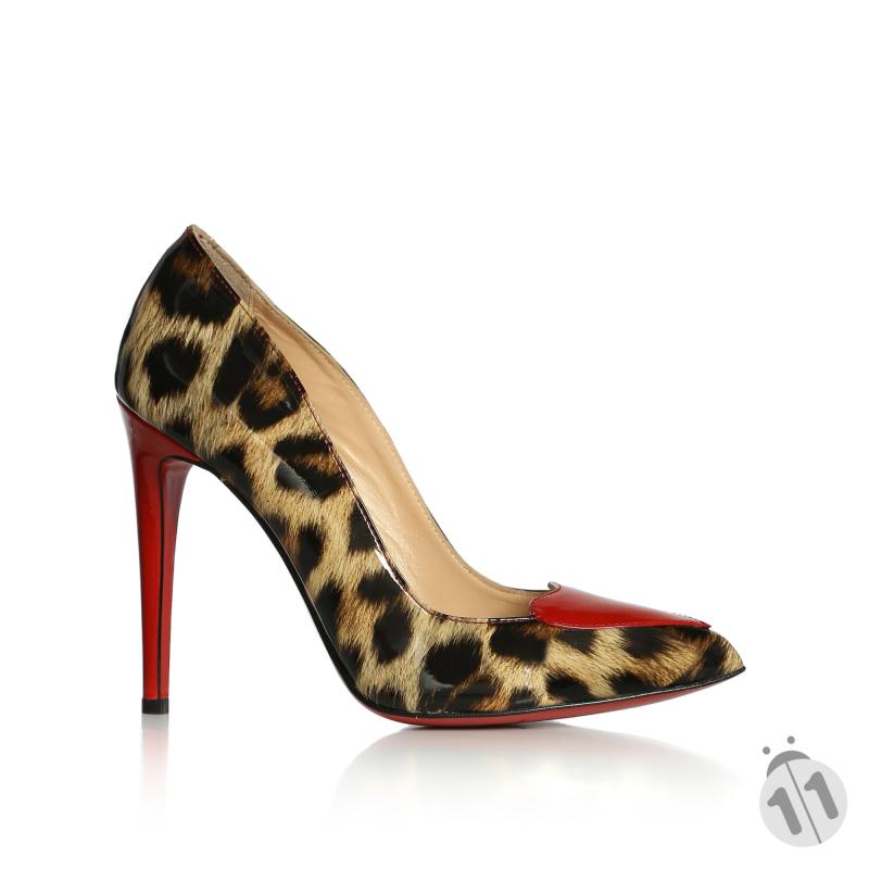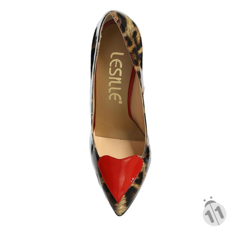 Leopar Baskılı & Kırmızı Rugan Kalpli Stiletto Ayakkabı