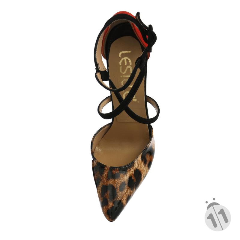Leopar Baskılı Rugan & Kırmızı & Siyah Süet Yandan Tokalı Çapraz Bantlı Ayakkabı(a-498)