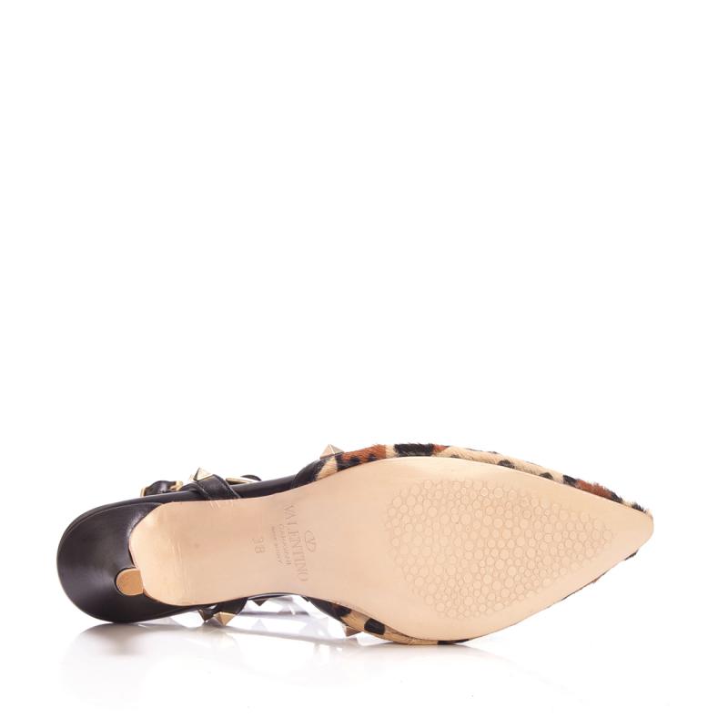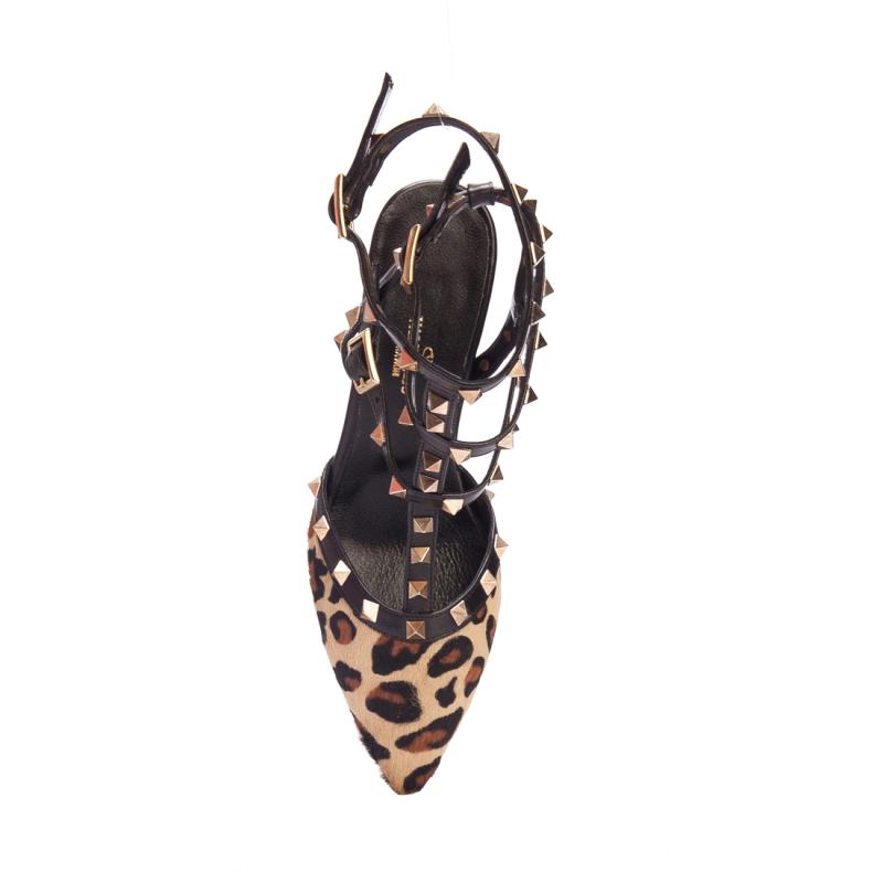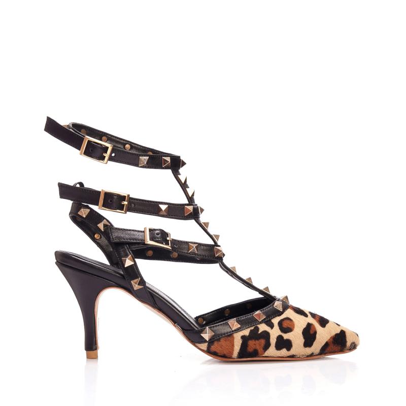 Leopar Baskılı Tay Derisi & Siyah Deri Üç Tokalı T Bantlı Pimli Ayakkabı