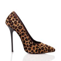 Leopar Desenli Tay Derisi Kahverengi Biyeli Stiletto Ayakkabı