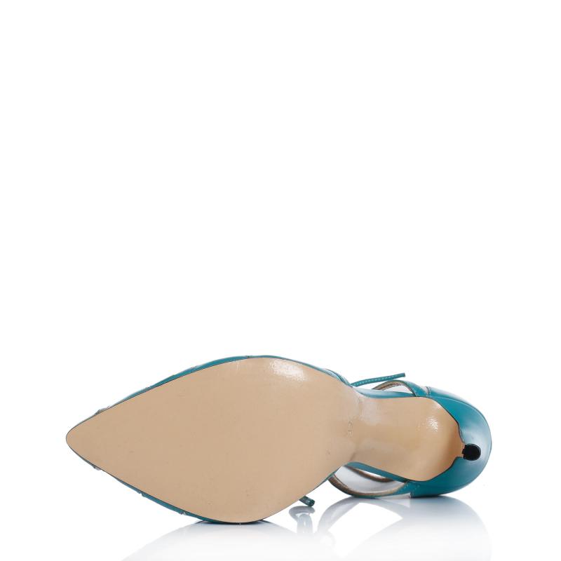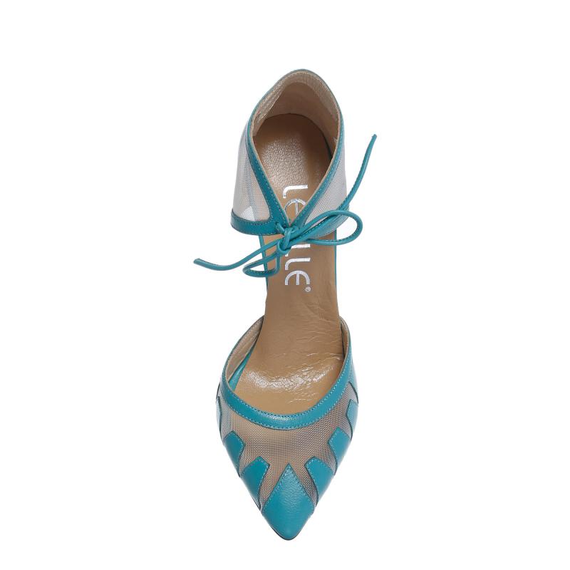Mavi Deri Fileli Önden Bağcıklı Ayakkabı