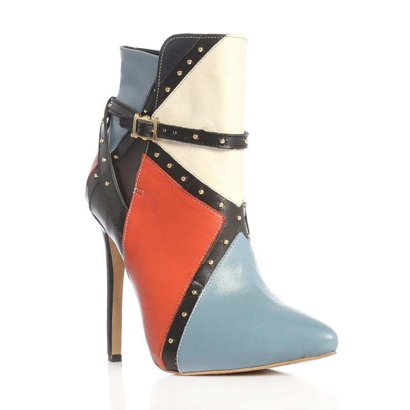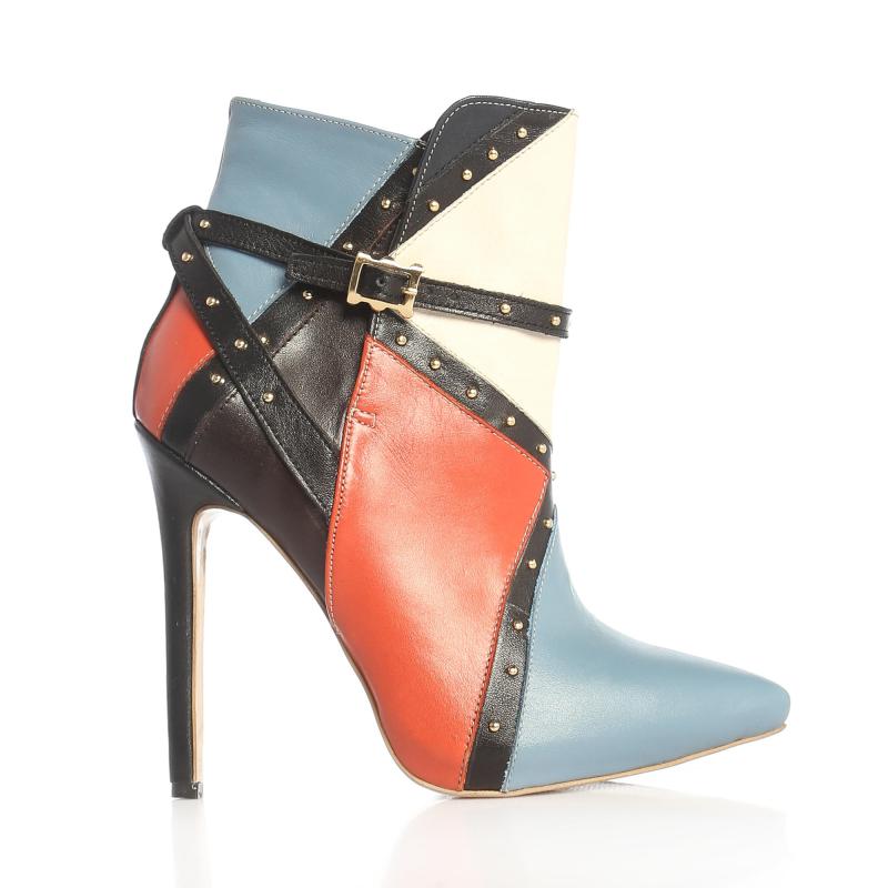 Mavi & Kırmızı & Yeşil & Siyah Deri Pimli Yandan Tokalı Bot(bot-167s)