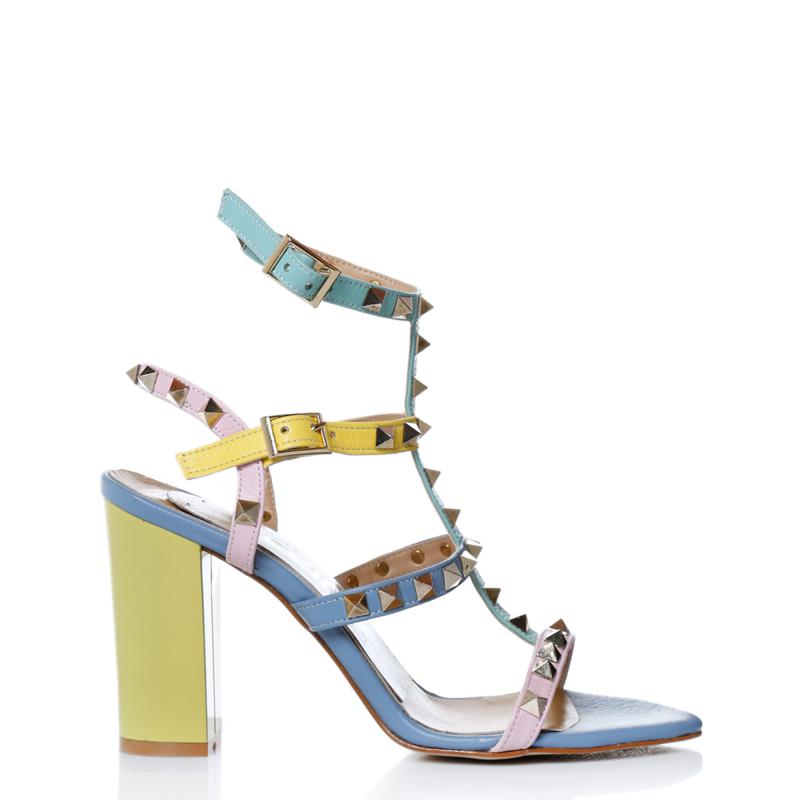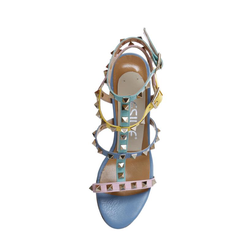Mavi & Sarı & Pudra Deri T Bantlı Pimli Mabeyn Ayakkabı(t-54)