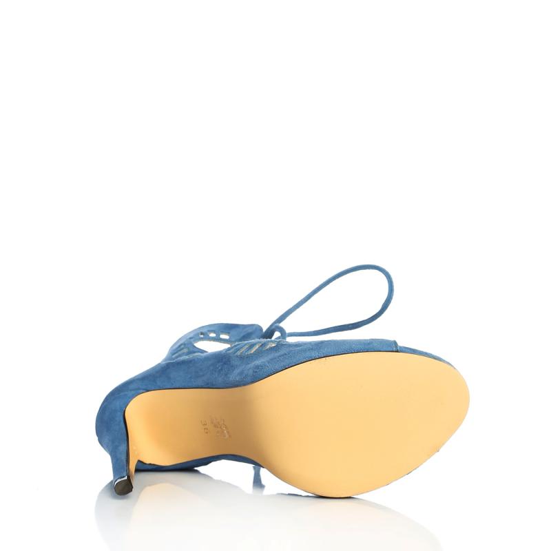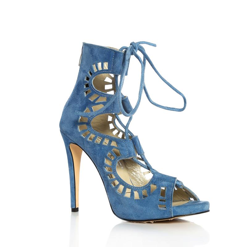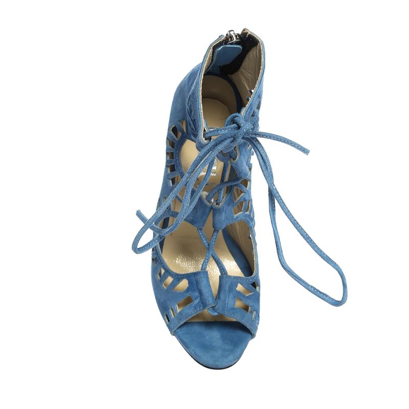 Mavi Süet Biye Bağcıklı Acurlu Arkadan Fermuarlı Ayakkabı(a-299)