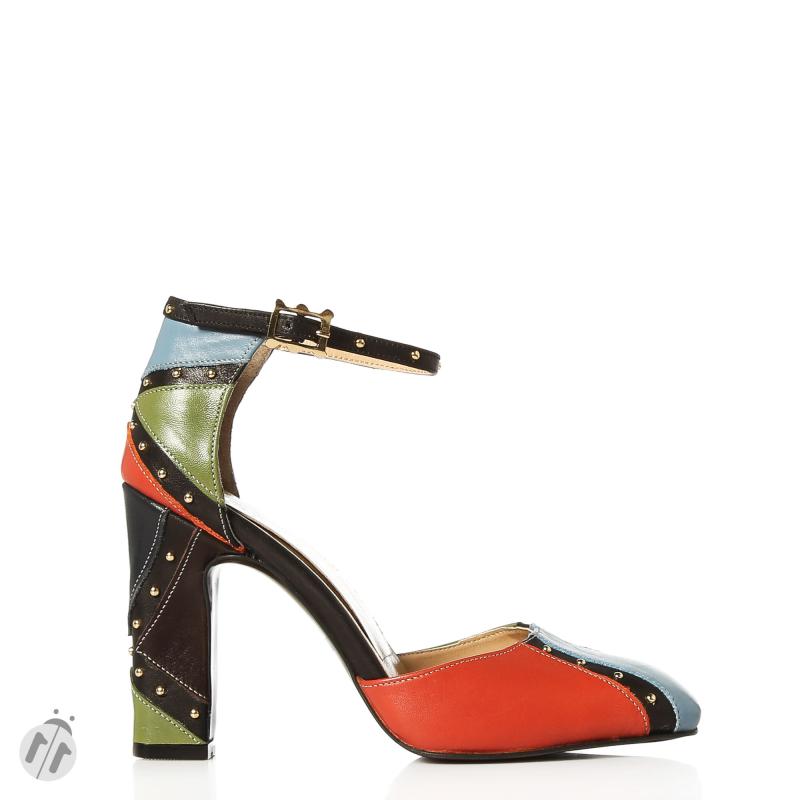 Mavi & Yeşil & Kremit & Bej Deri Şerit Pimli Ayakkabı