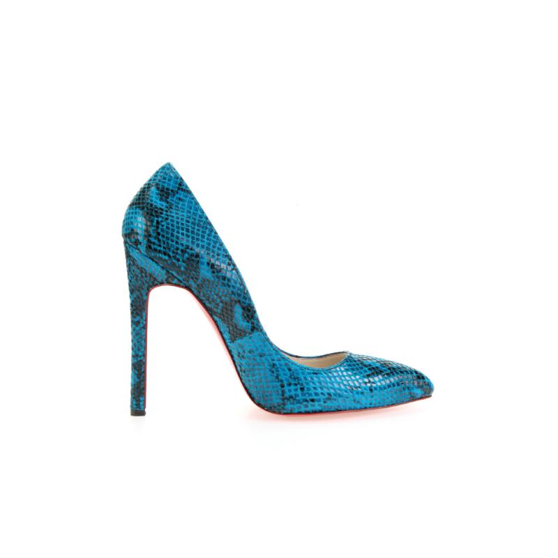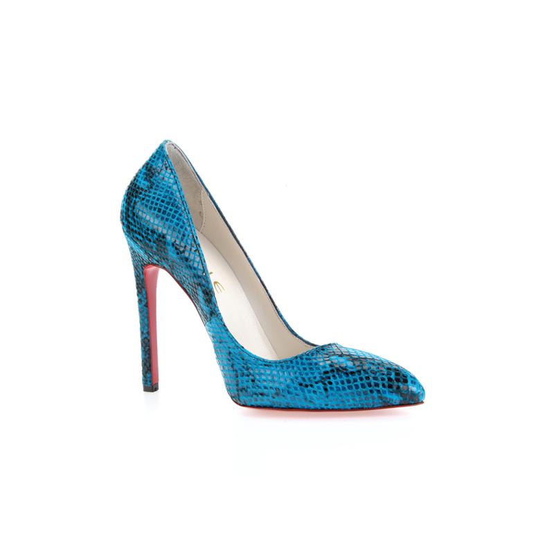 Mavi Yılan Baskılı Deri Stiletto Ayakkabı