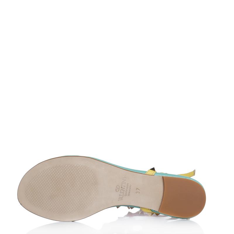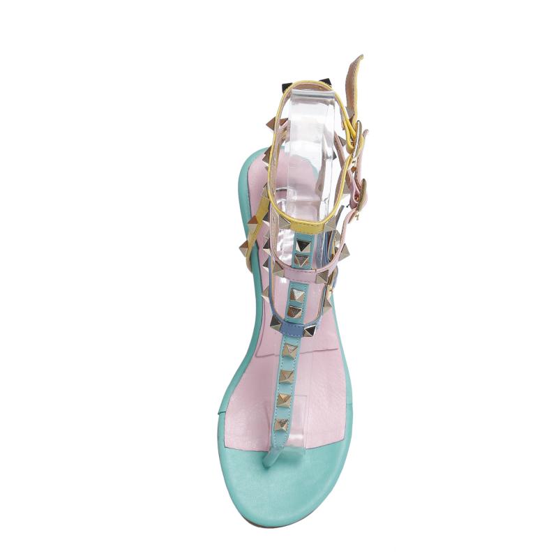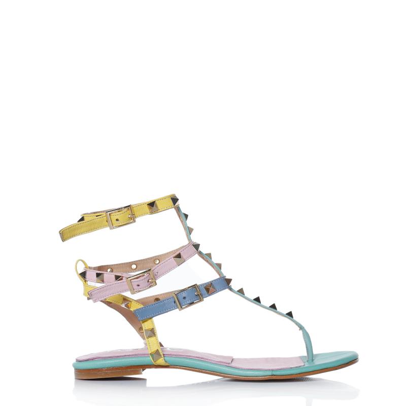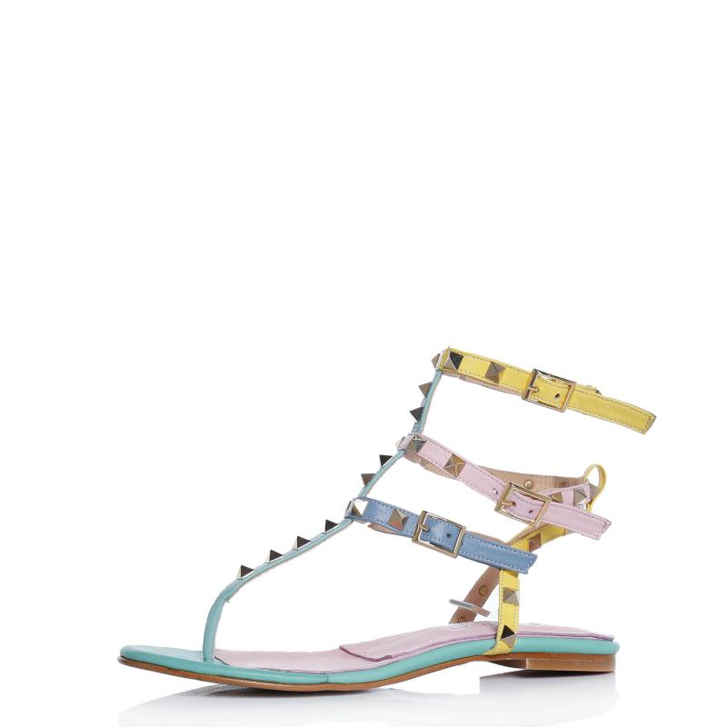 Mint & Fuşya & Sarı & Mavi Deri Üç Tokalı Pimli Parmak Arası Terlik