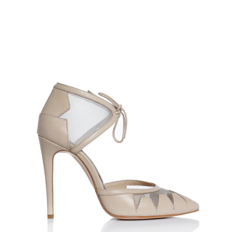 Nude Deri Fileli Önden Bağcıklı Ayakkabı