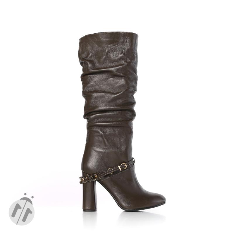 Olive Yeşil Deri Yandan Zincir Tokalı Dökümlü Çizme(c-64)