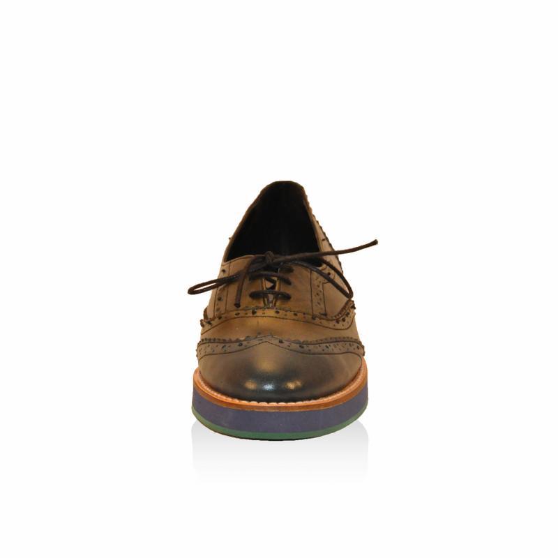 Petrol Yeşili & Haki Yeşil Deri Köpük Tabanlı Oxford Ayakkabı