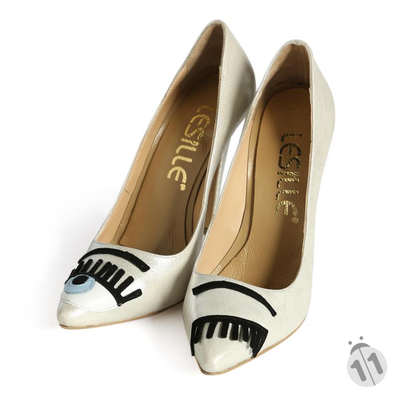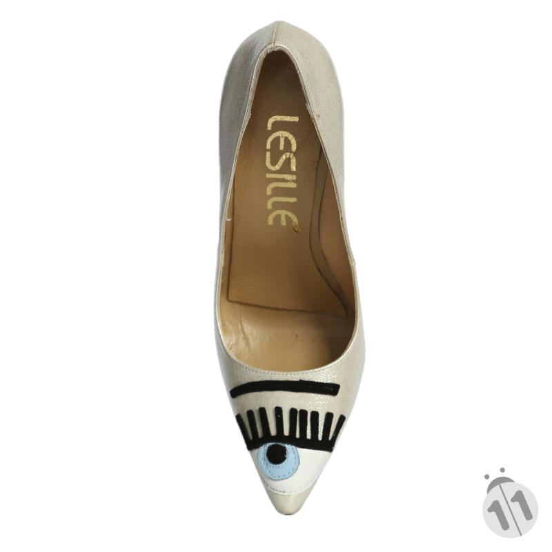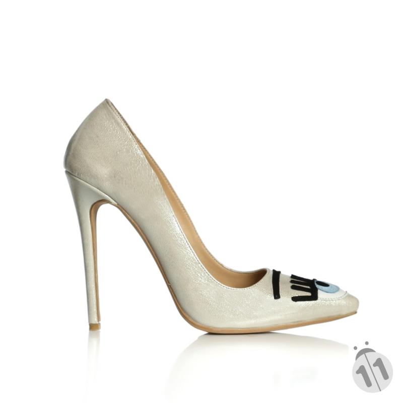 Platin Deri Kaş Göz Figürlü Stiletto(a-479g)