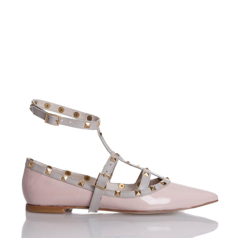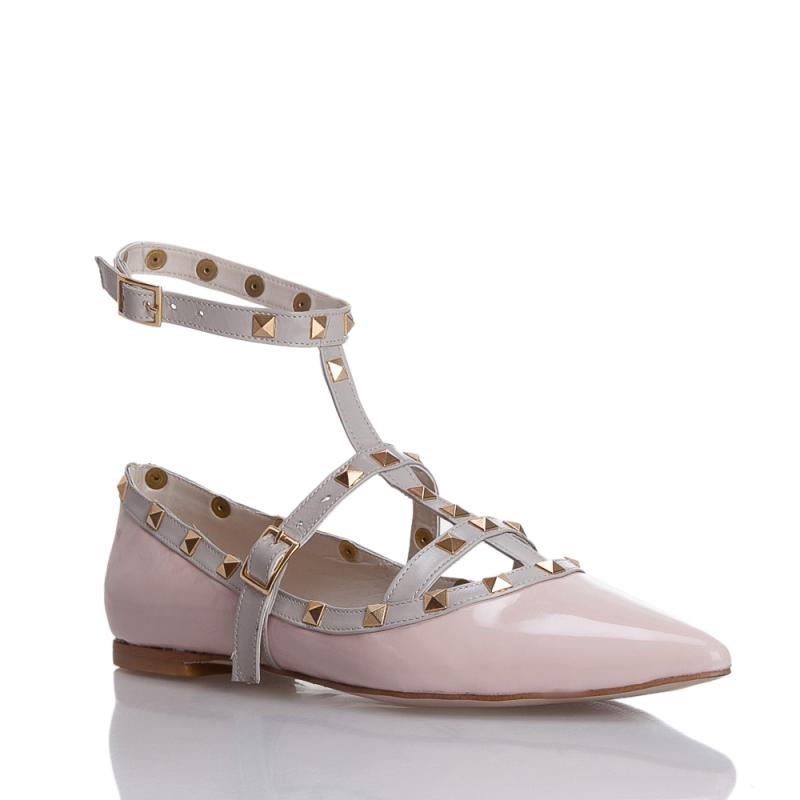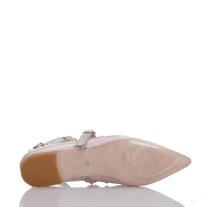 Pudra Rugan & Krem Deri T Bantlı Pimli Babet