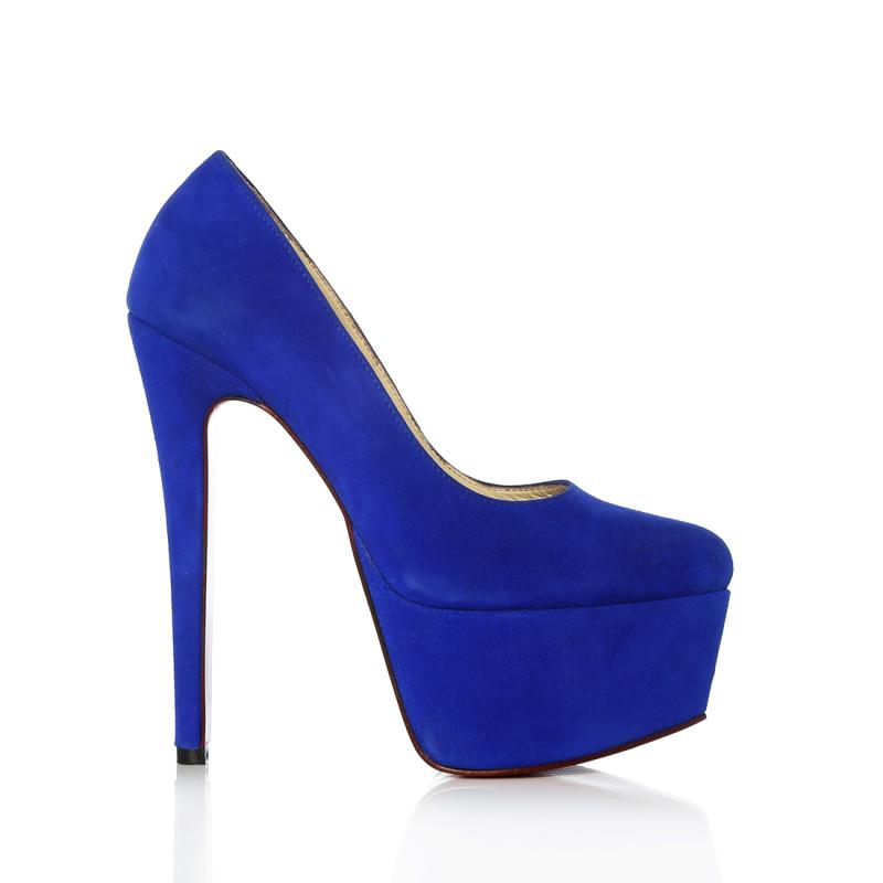 Saks Mavi Süet Kalın Platformlu Ayakkabı