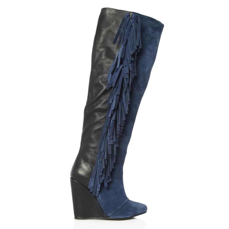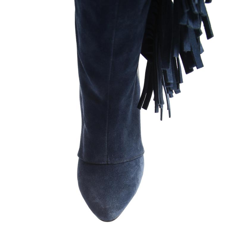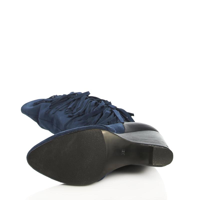 Saks Mavi Süet & Lacivert Deri Yandan Püsküllü Dolgu Topuk Çizme