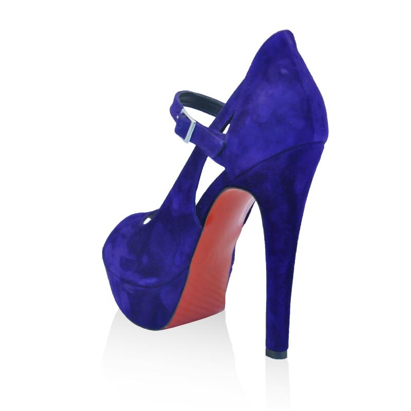 Saks Mavisi Süet Atkılı Burnu Açık Ayakkabı(a-119)