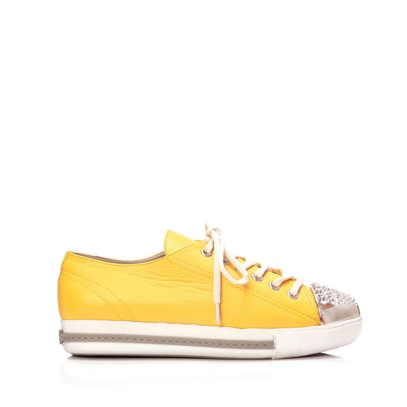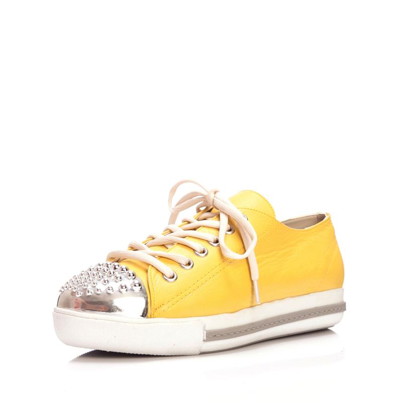Sarı Deri Gümüş Burun Droglu Maskeretli Sneaker Ayakkabı