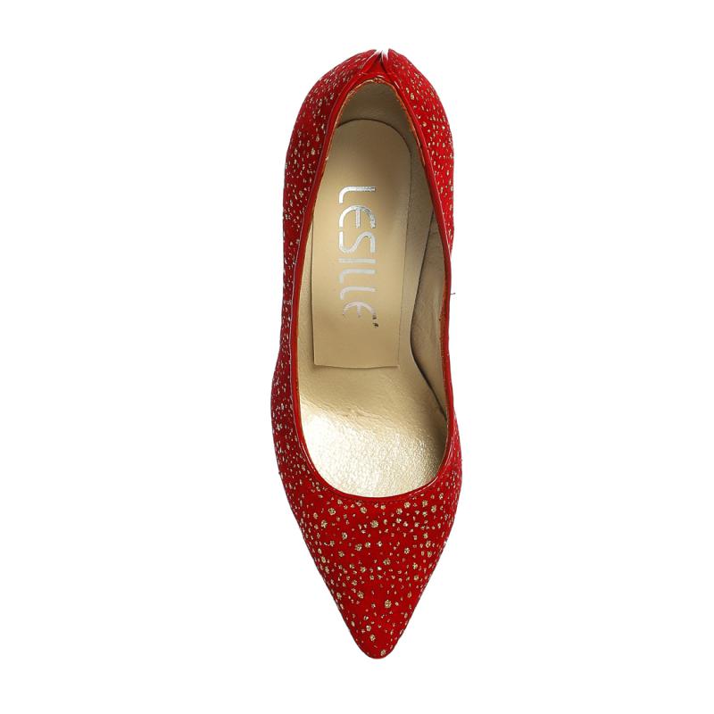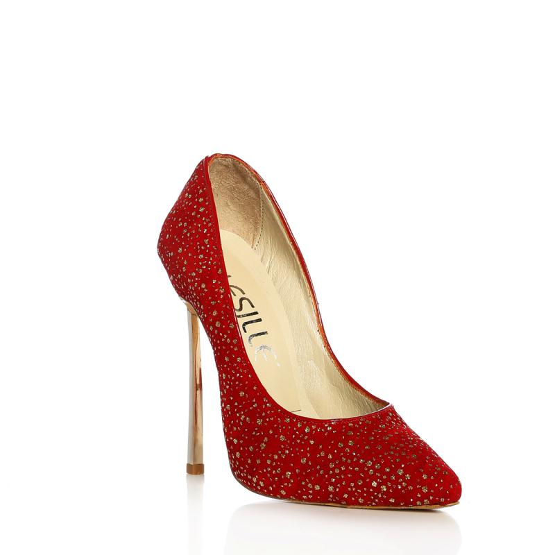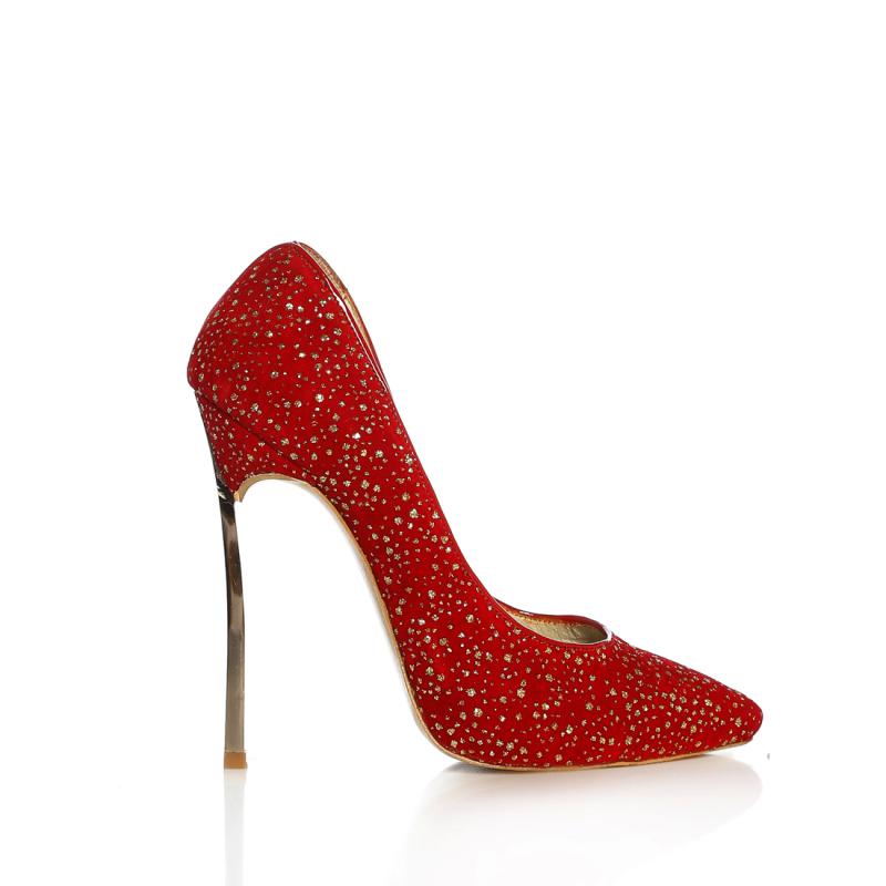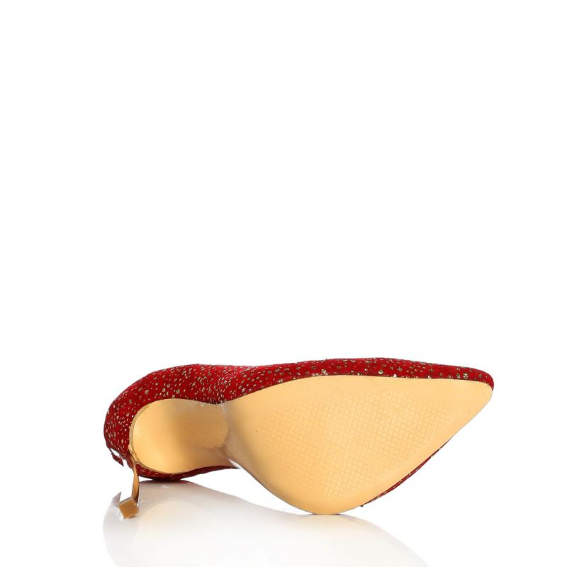 Simli Kırmızı Süet Çelik Topuk Sivri Burun Ayakkabı(326)
