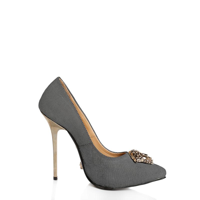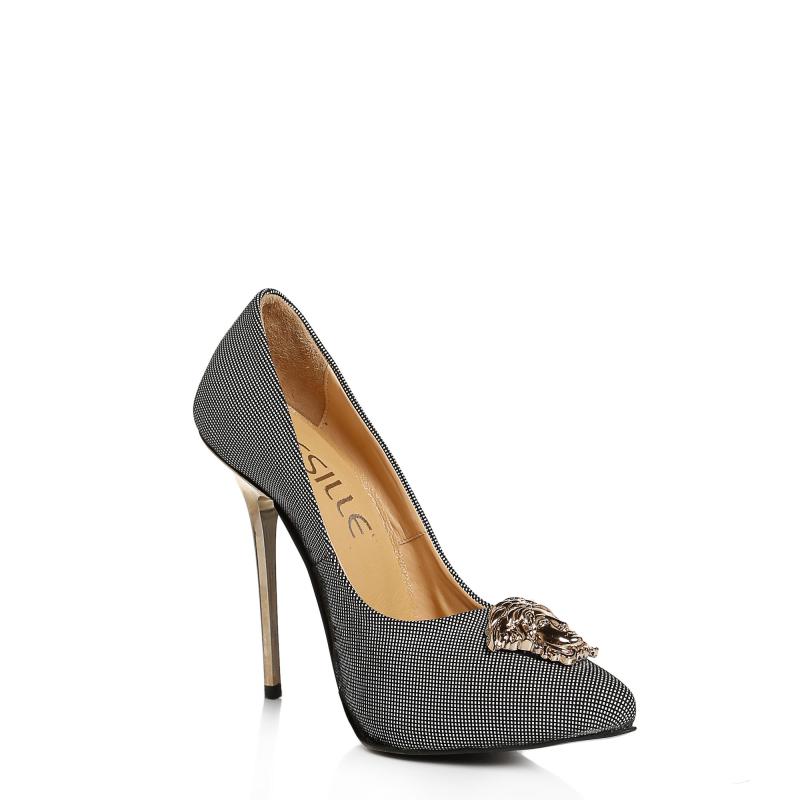 Siyah & Beyaz Nubuk Deri Medusa Tokalı Stiletto Ayakkabı(A-321)