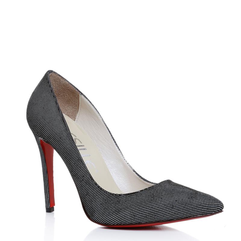 Siyah & Beyaz Süet Üstü Baskılı Deri Stiletto Ayakkabı(A-198)