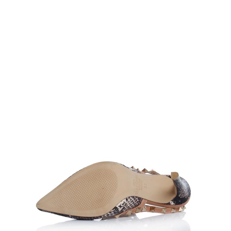 Siyah & Beyaz Yılan Baskılı & Tenrengi Deri T Bantlı Pimli Ayakkabı