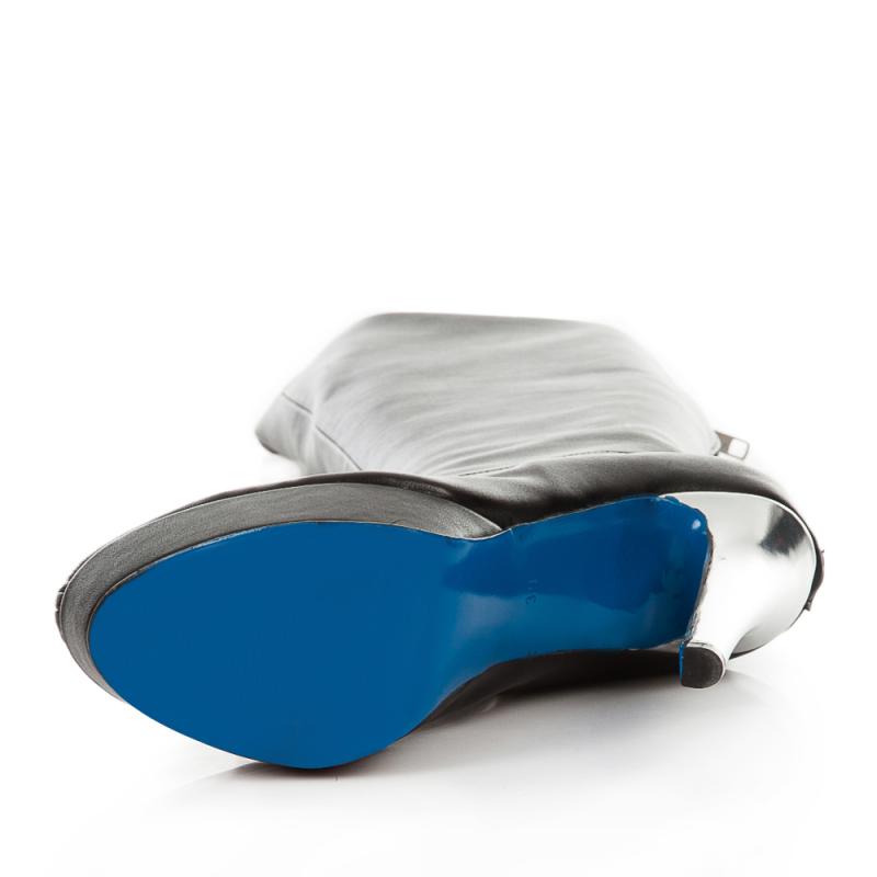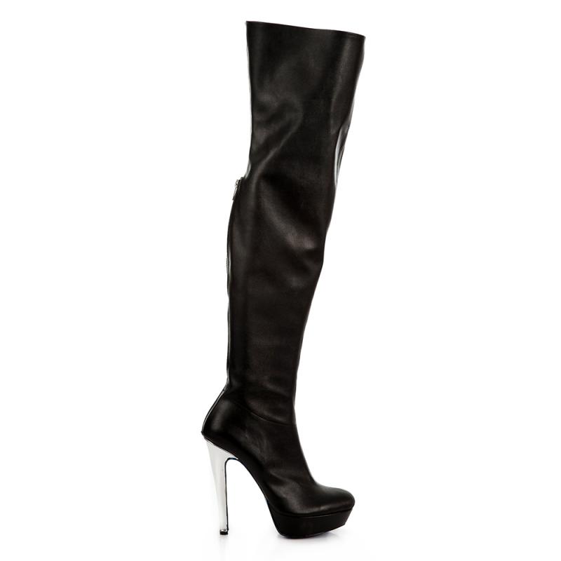 Siyah Deri Arkadan Fermuarlı Stretch Dizüstü Çizme