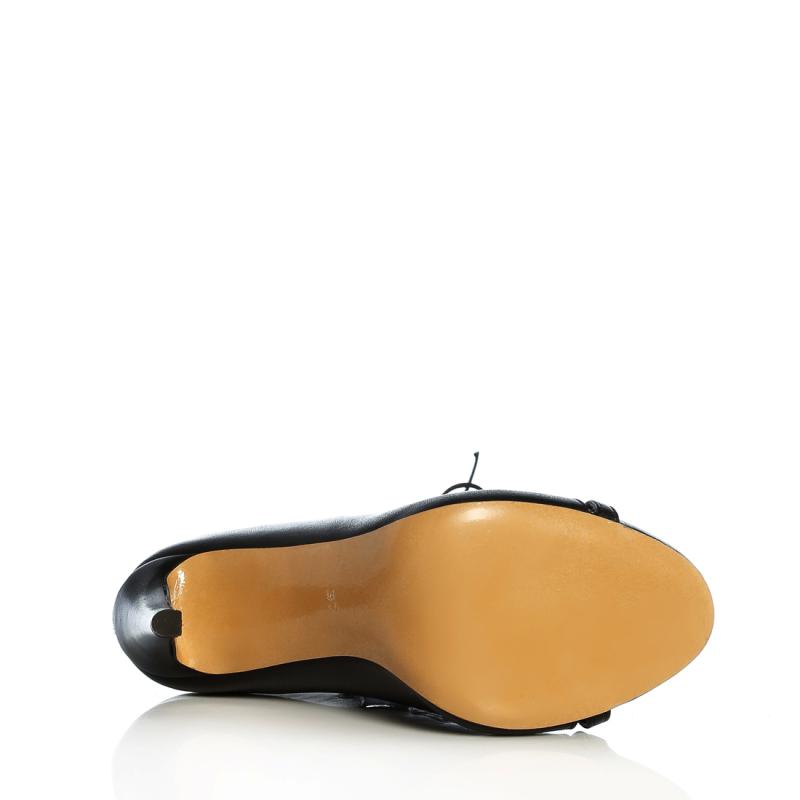 Siyah Deri Bağcıklı Acurlu Arkadan Fermuarlı Ayakkabı
