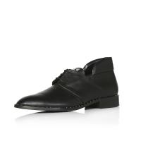 Siyah Deri Bağcıklı Kuru Kafa Tokalı Ayakkabı