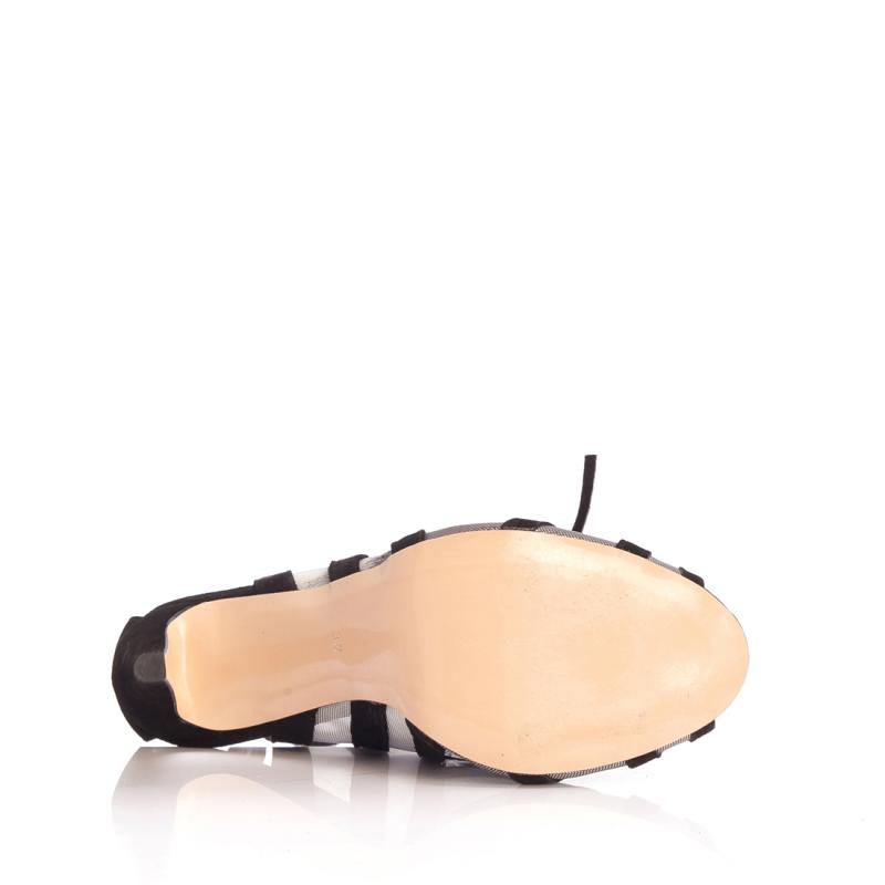 Siyah Deri & Beyaz Fileli Bağcıklı Ayakkabı