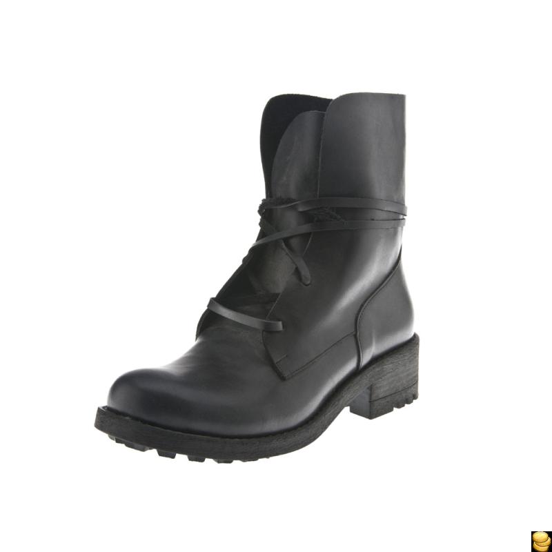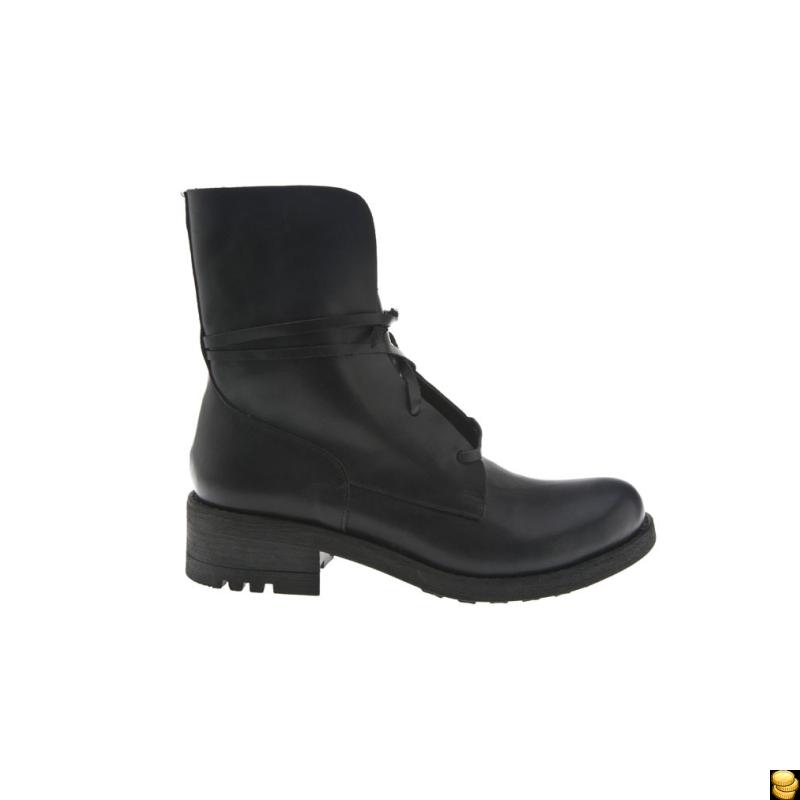Siyah Deri Biye Bağcıklı Kauçuk Tabanlı Bot