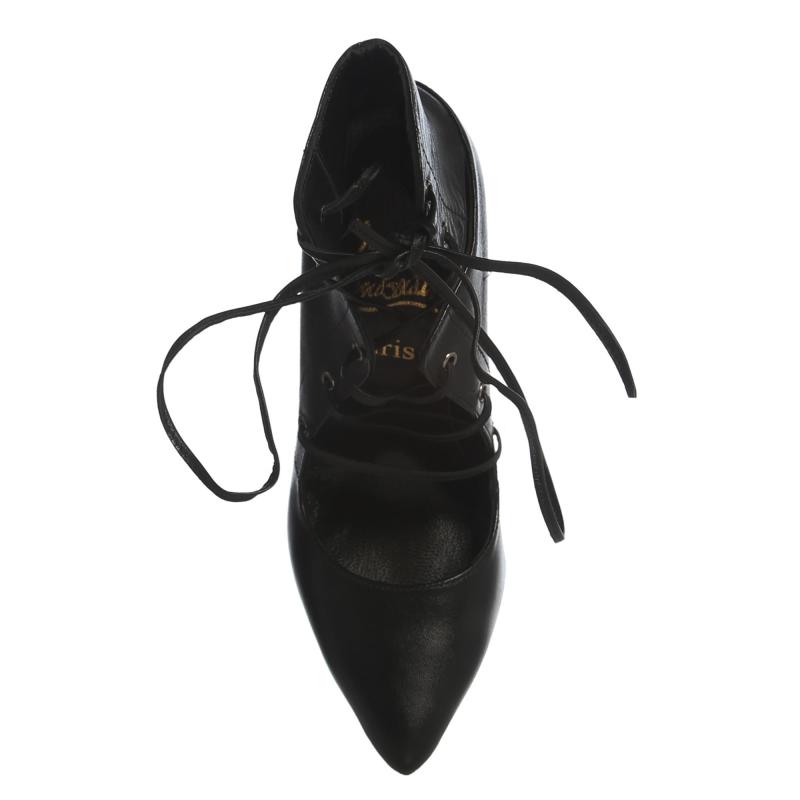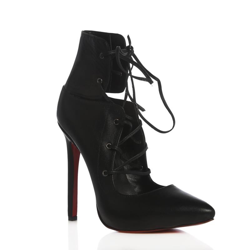 Siyah Deri Biye Bağcıklı Stiletto Ay(a-413)