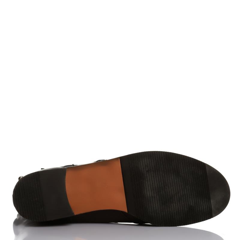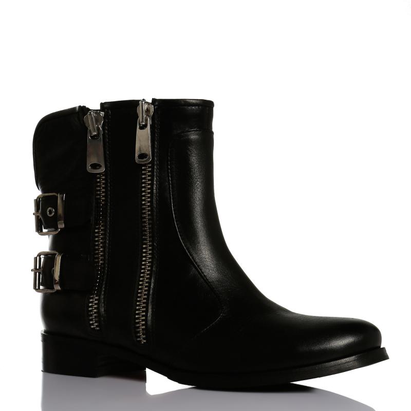Siyah Deri Çift Tokalı Çift Fermuar Aksesuarlı Bot