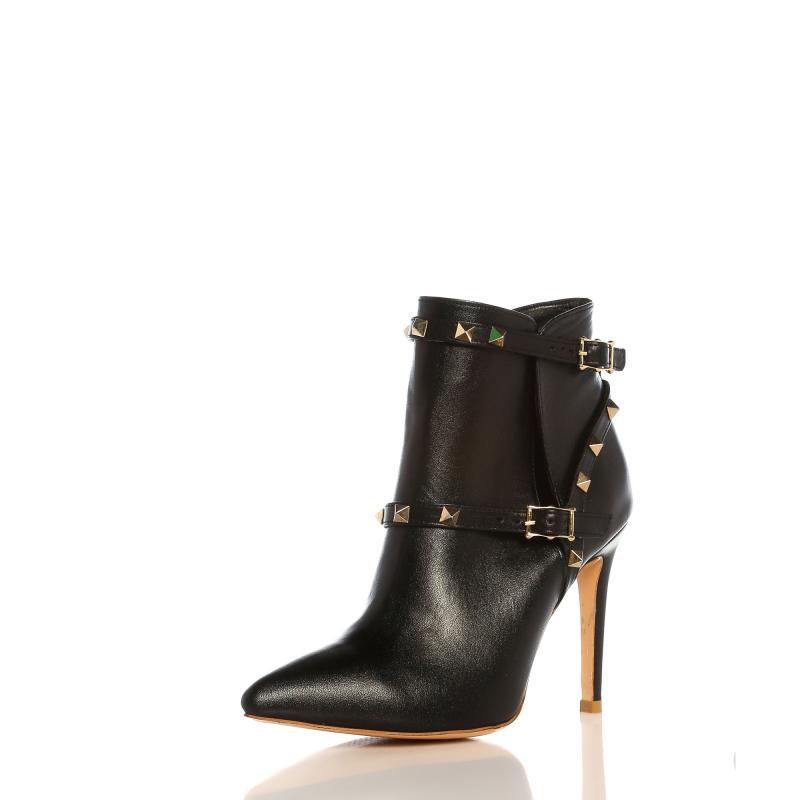 Siyah Deri Pimli Bantlı Sivri Burun Bot(bot-83)