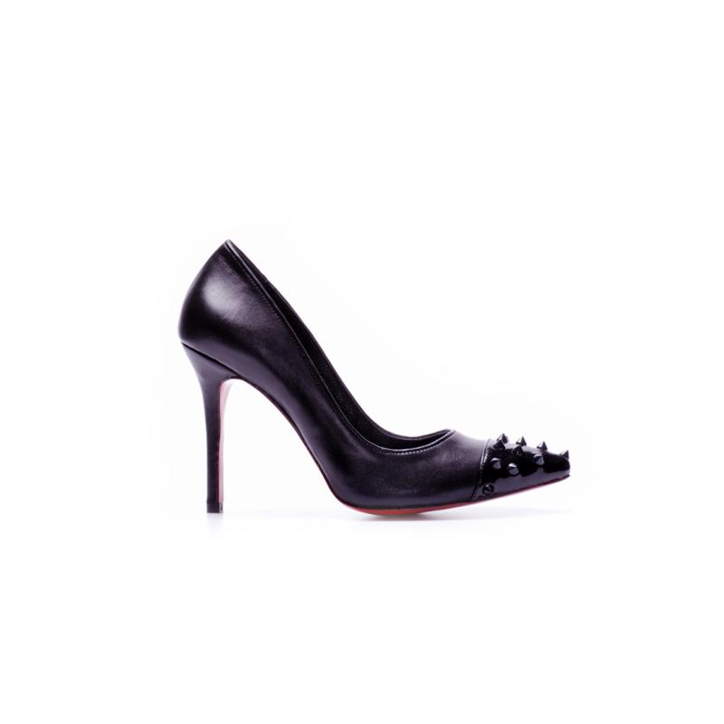 Siyah Deri & Rugan Pimli Önü Pimli Stiletto Ayakkabı