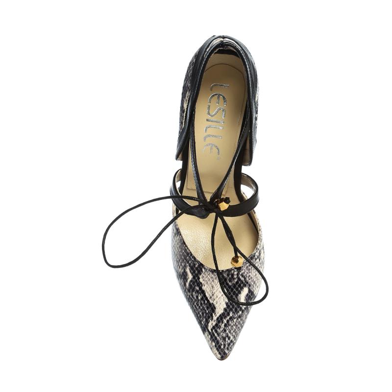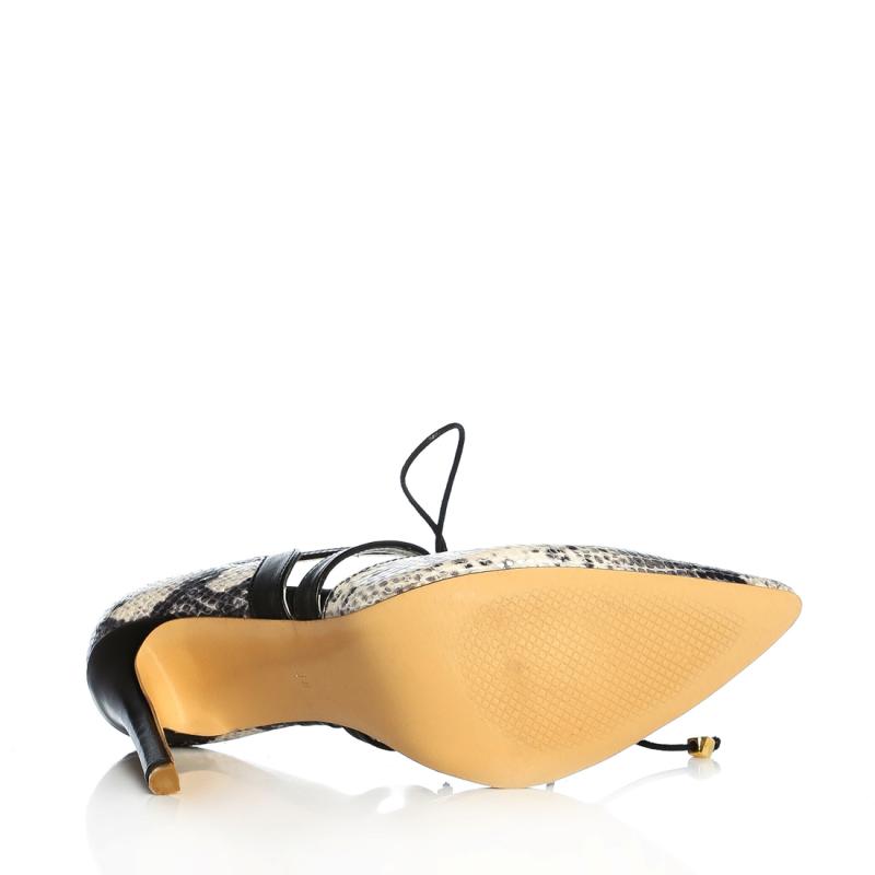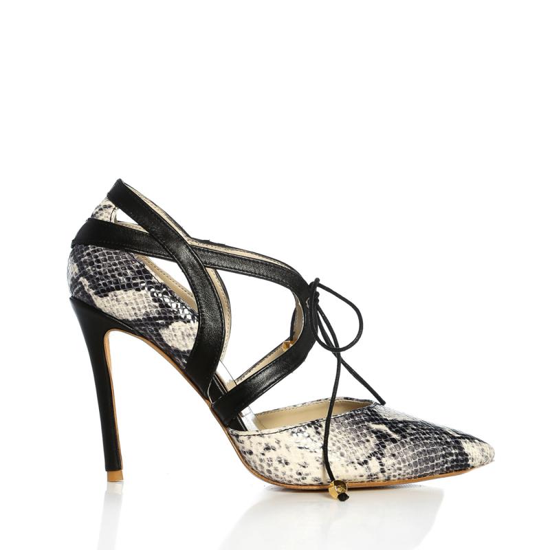 Siyah Deri & Siyah & Beyaz Yılan Basılı Deri Acurlu Biye Bağcıklı Ayakkabı