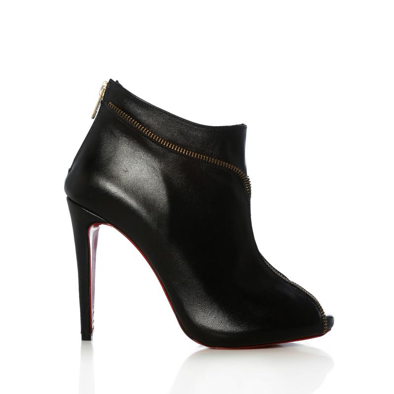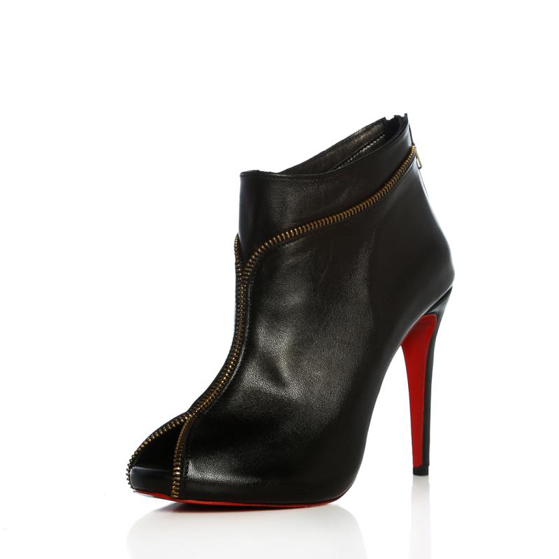 Siyah Deri & Süet Fermuar Şeritli Arkadan Fermuarlı Bootie