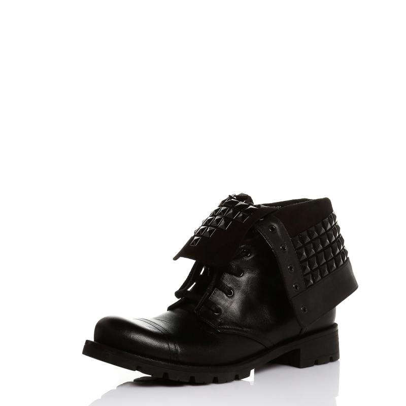 Siyah Deri & Süet Yakası Pimli Postal Bot