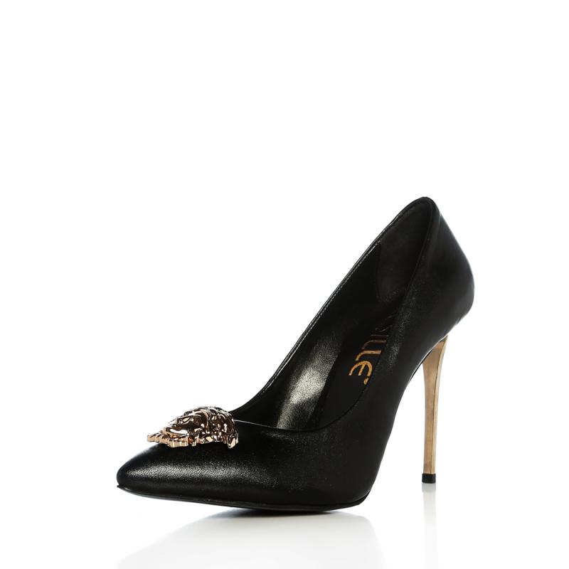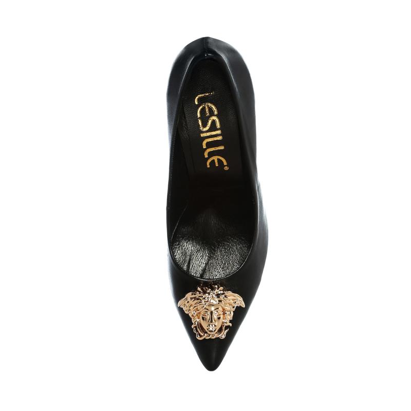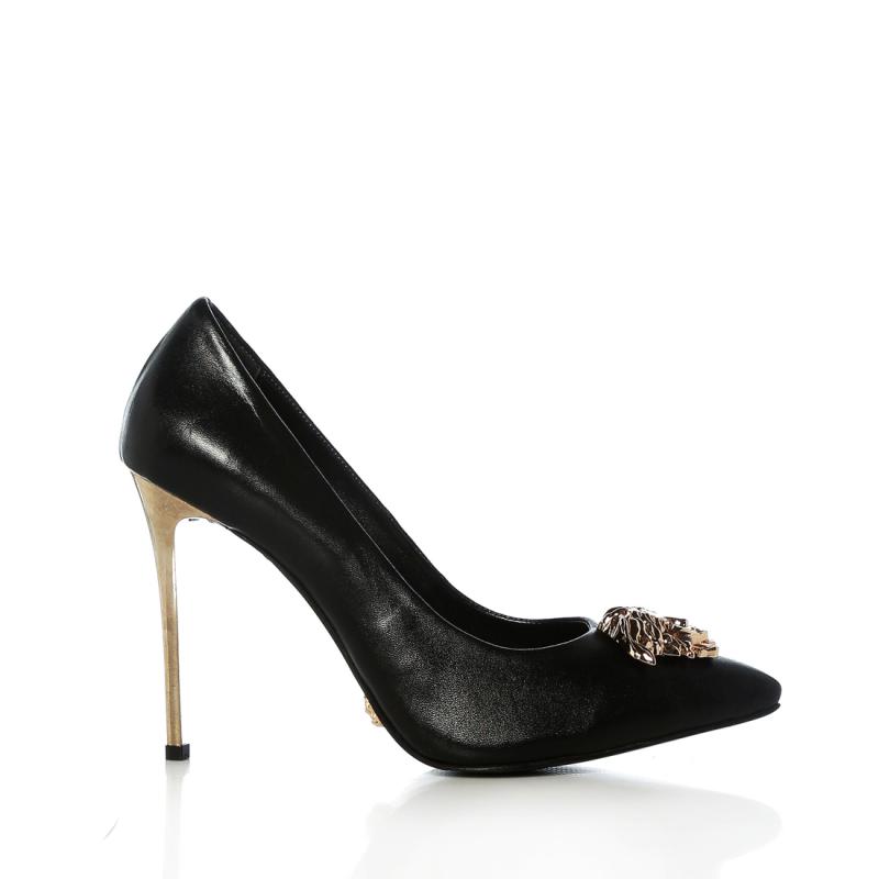 Siyah Deri Tokalı Galvaniz Topuklu Stiletto Ayakkabı(a-321)