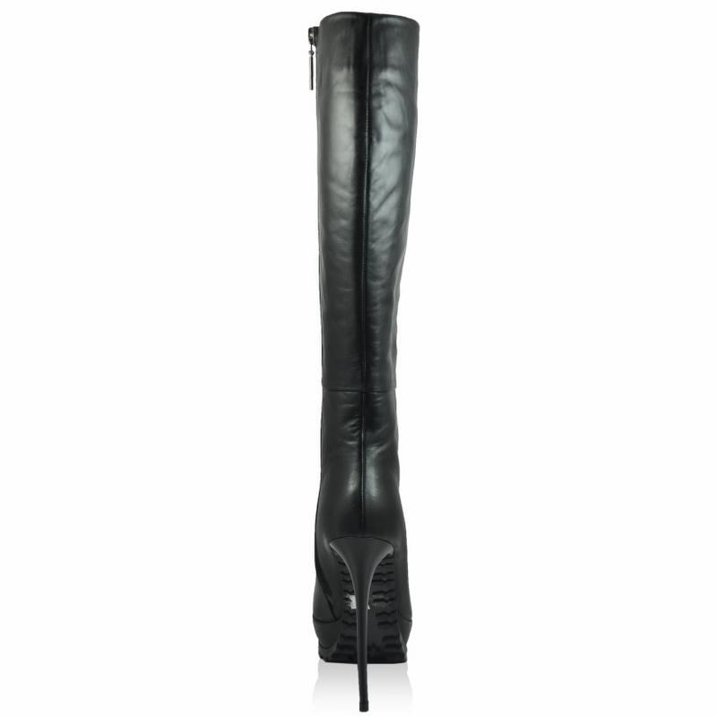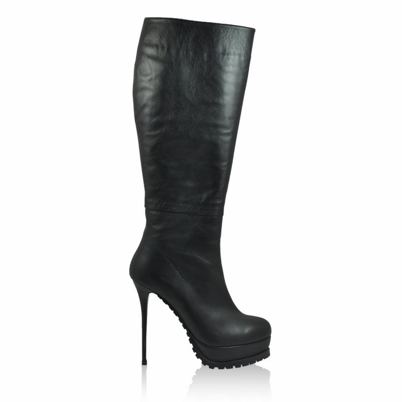 Siyah Deri Vardolalı Çizme