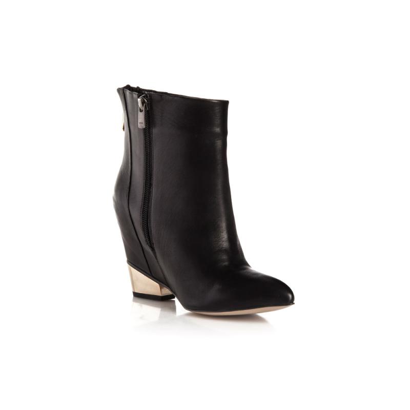 Siyah Deri Yarı Galvaniz Yarı Gizli Dolgu Topuklu Bot