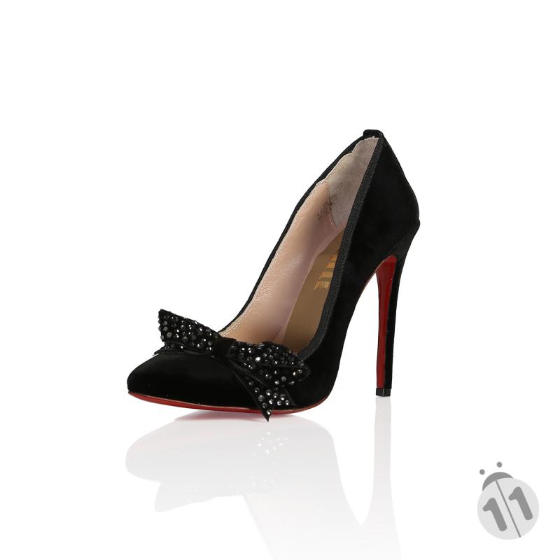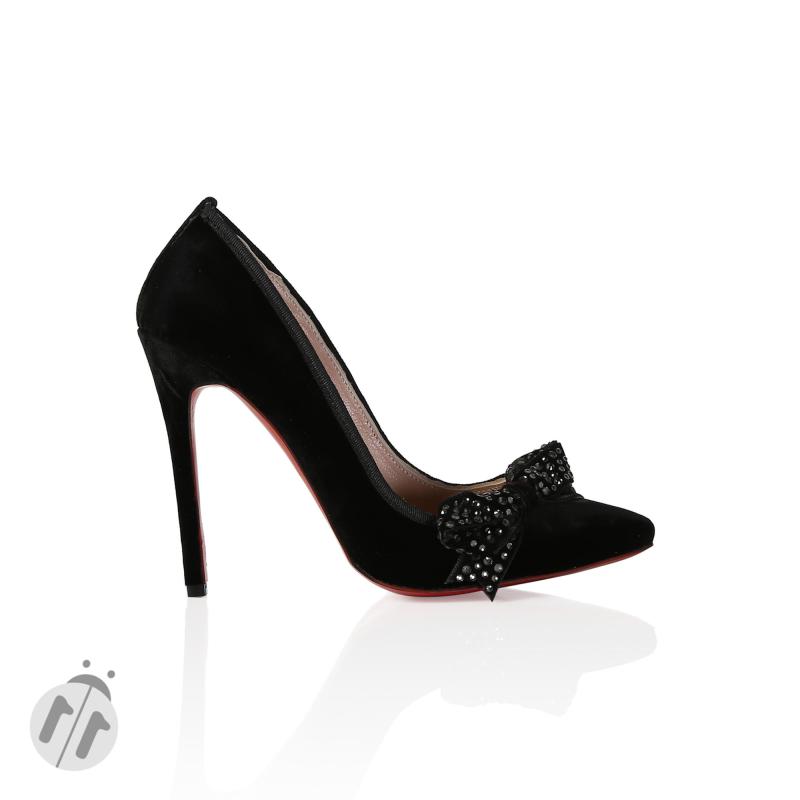 Siyah Kadife Taşlı Fiyonklu Ayakkabı