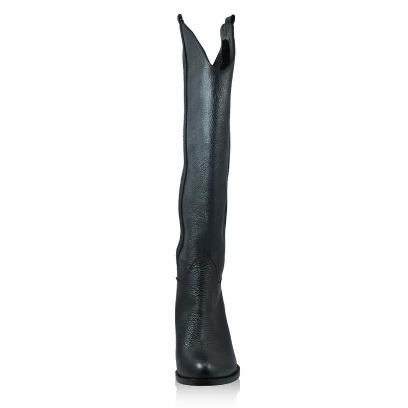 Siyah Kips Deri Dökümlü Çizme