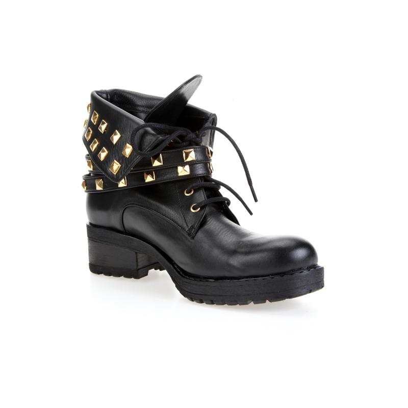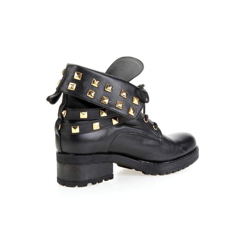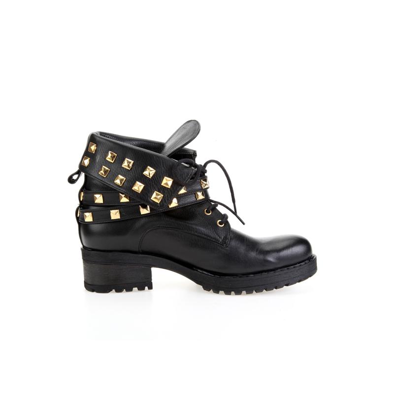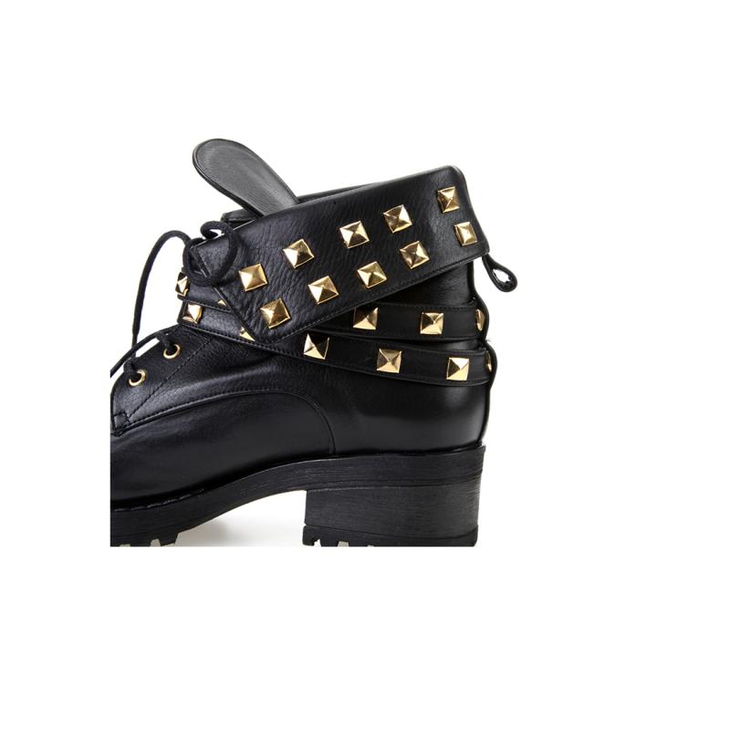 Siyah Kips Deri Pimli Çift Atkılı Bot
