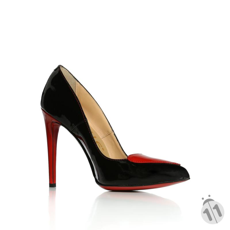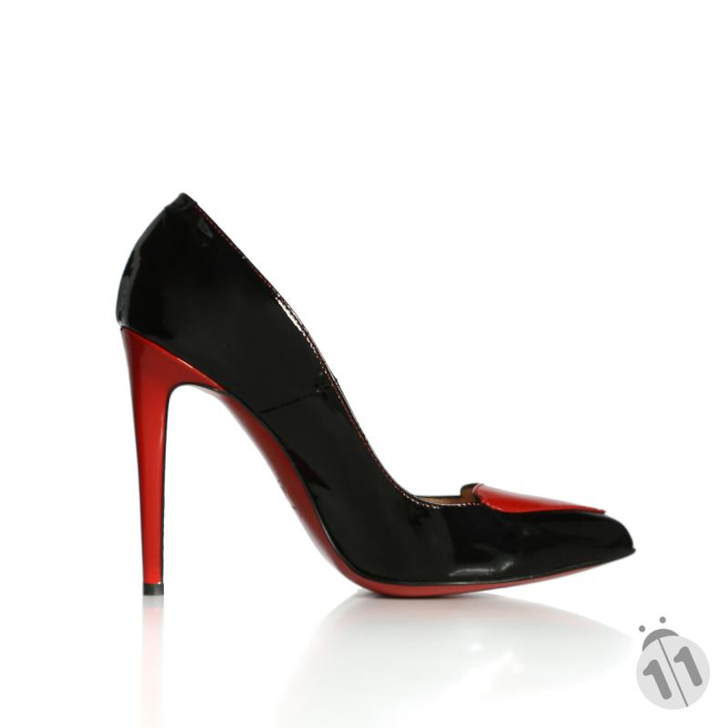 Siyah & Kırmızı Rugan Kalpli Stiletto Ayakkabı