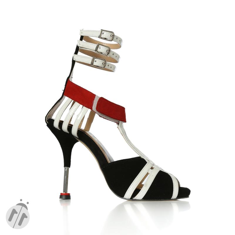 Siyah & Kırmızı Süet Beyaz Rugan Üç Tokalı Cırtlı Ayakkabı
