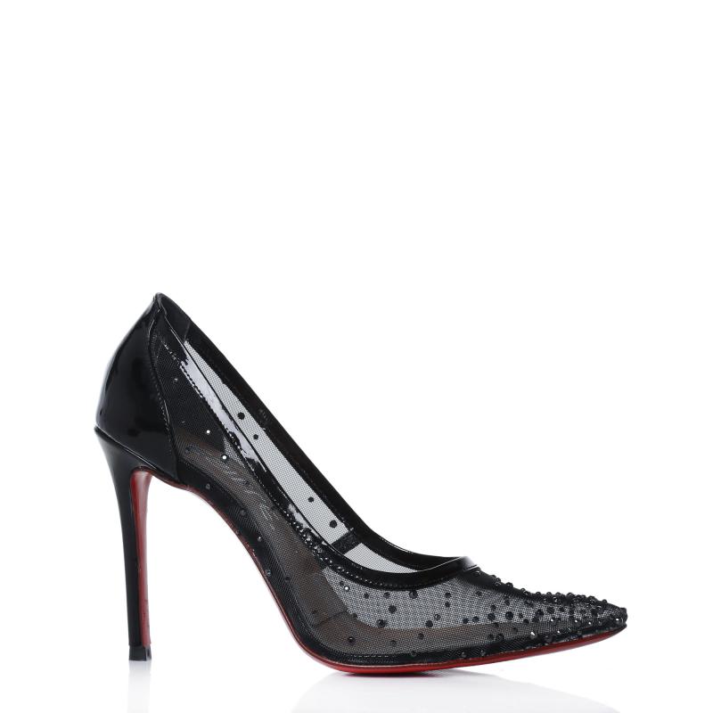 Siyah Rugan Fileli Taşlı Ayakkabı(a-343)