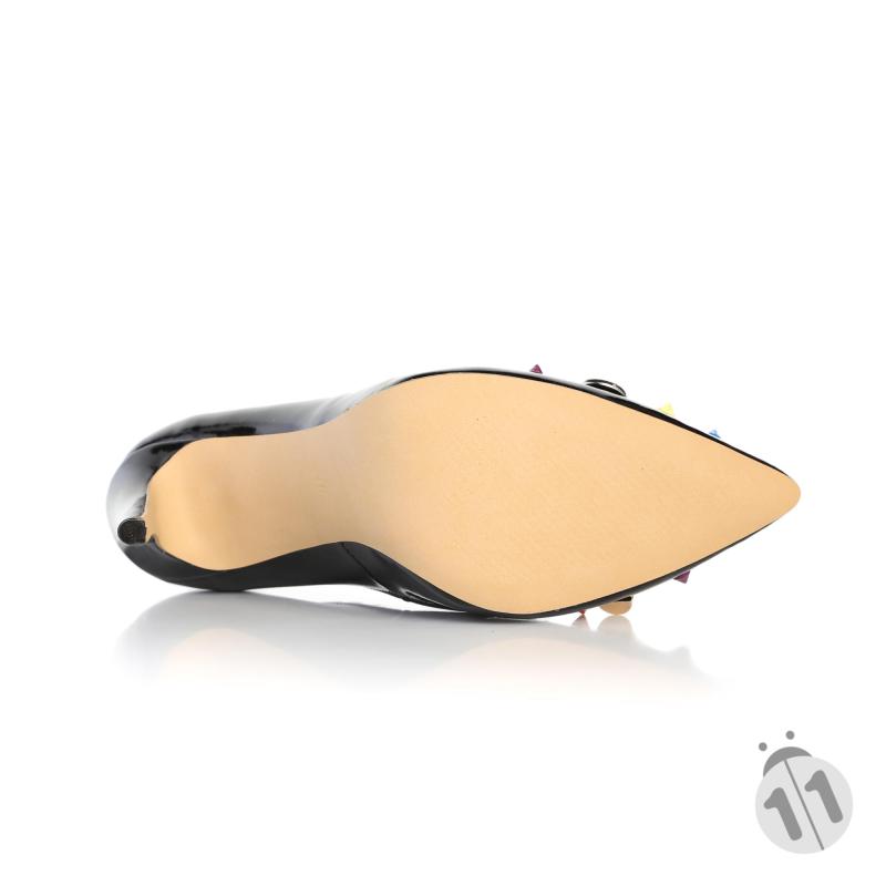 Siyah Rugan Pimli & Düğmeli & Makaralı Ayakkabı