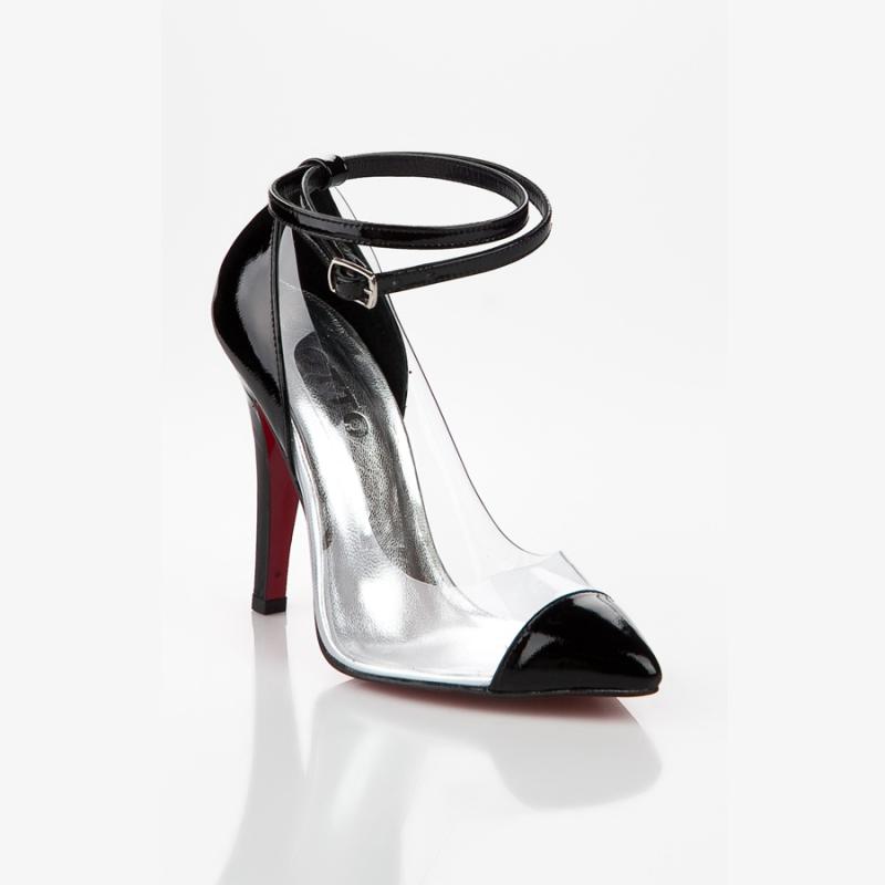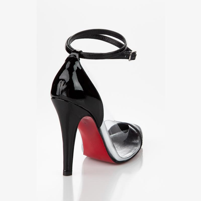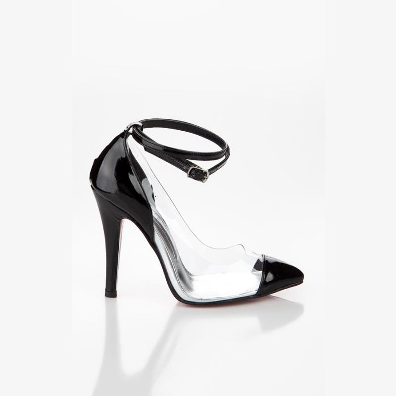 Siyah Rugan Yandan Tokalı Şeffaf Mıkalı Ayakkabı