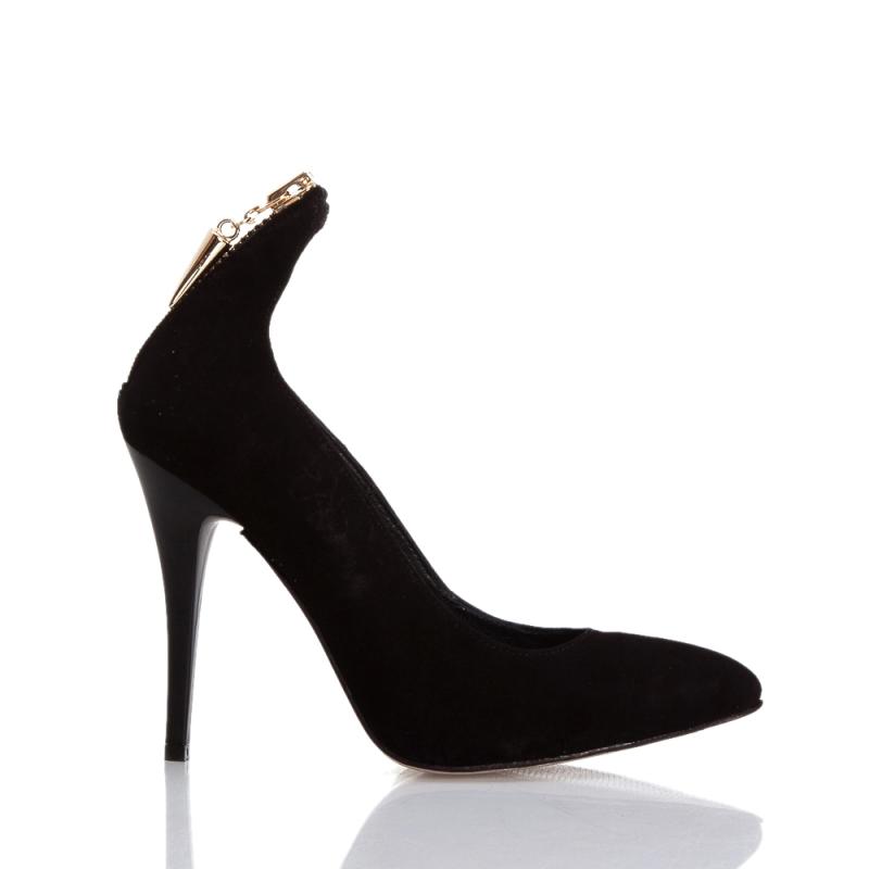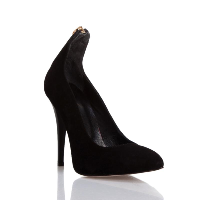 Siyah Süet Arkadan Fermuarlı Stiletto Ayakkabı