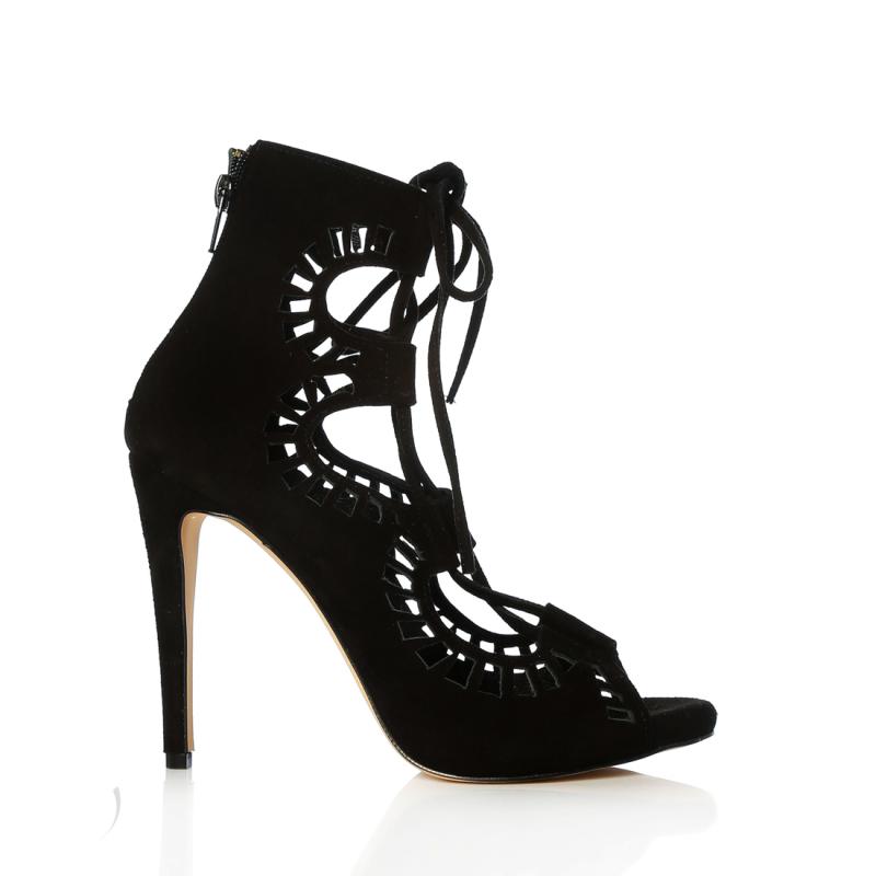 Siyah Süet Biye Bağcıklı Acurlu Arkadan Fermuarlı Ayakkabı(a-299)